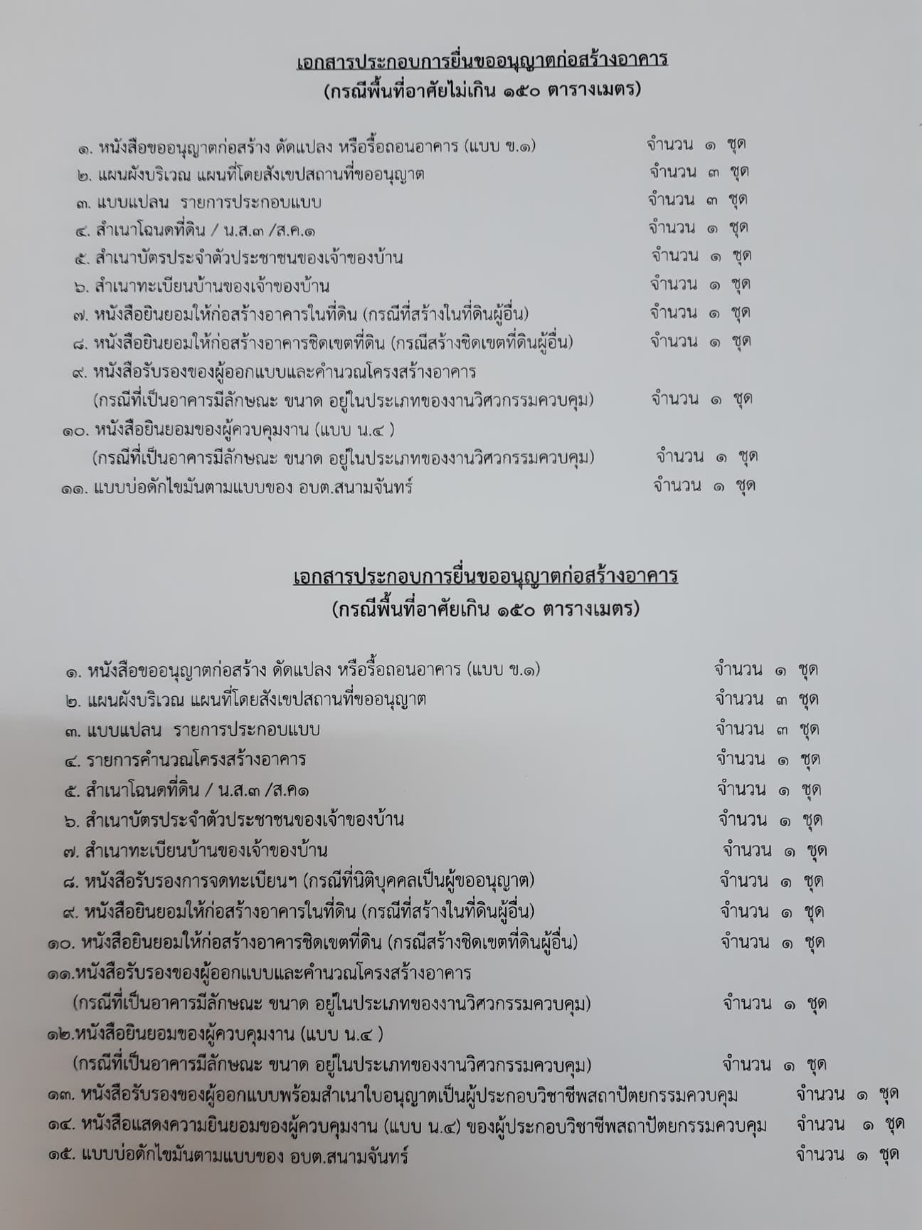 เอกสารที่ใช้แนบการยื่นขออนุญาตก่อสร้างอาคาร (รายละเอียดตามแนบท้าย)